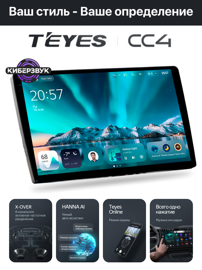 Teyes CC4 подойдёт тем, кто хочет купить магнитолу Teyes на Android 14 с 2K QLED экраном, хорошим запасом производительности, расширенными аудионастройками и поддержкой CarPlay, Android Auto, камер и навигации. Это сильная средняя модель для тех, кому уже нужен более серьёзный звук и более качественный экран, чем у базовой версии.