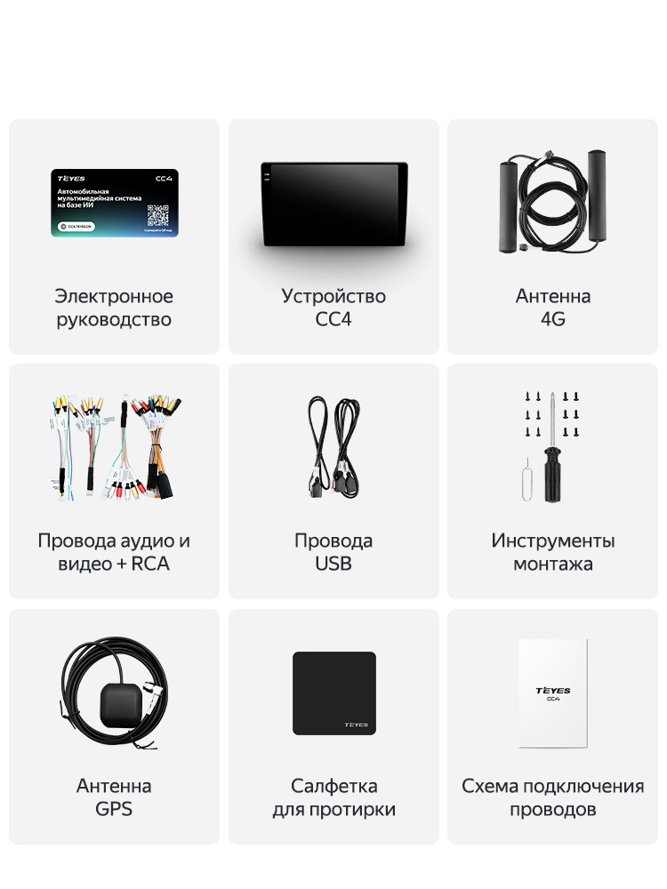 Teyes CC4 - это средняя модель в линейке Teyes 4 поколения, которая уже заметно интереснее базовой версии по экрану, памяти и звуку. Магнитола работает на Teyes OS на базе Android 14, оснащена 8-ядерным процессором Qualcomm SM6225, имеет 2K QLED-дисплей 2000x1200, поддерживает беспроводной CarPlay и Android Auto, а также подключение камер, аксессуаров, SIM-карты, Wi-Fi и 4G.