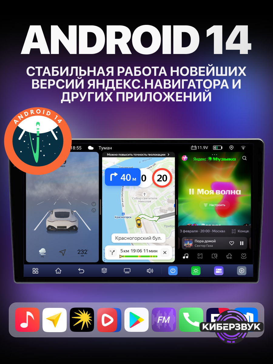 Магнитола работает на реальном Android 14, а это значит, что она поддерживает современные приложения, обновления и имеет понятный интерфейс.