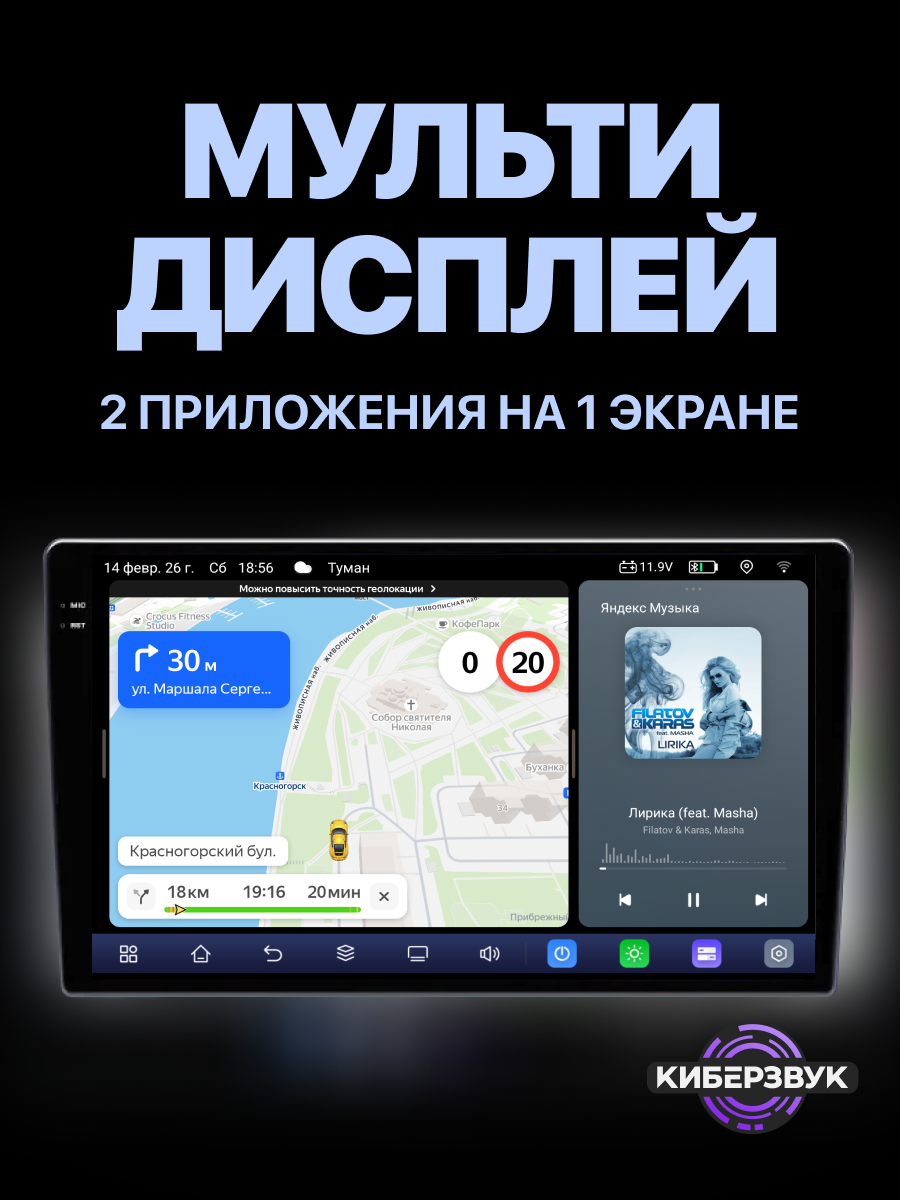 Магнитола поддерживает Apple CarPlay и Android Auto, а значит — можно пользоваться привычными функциями смартфона прямо на дисплее устройства.