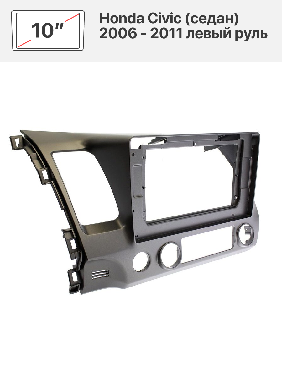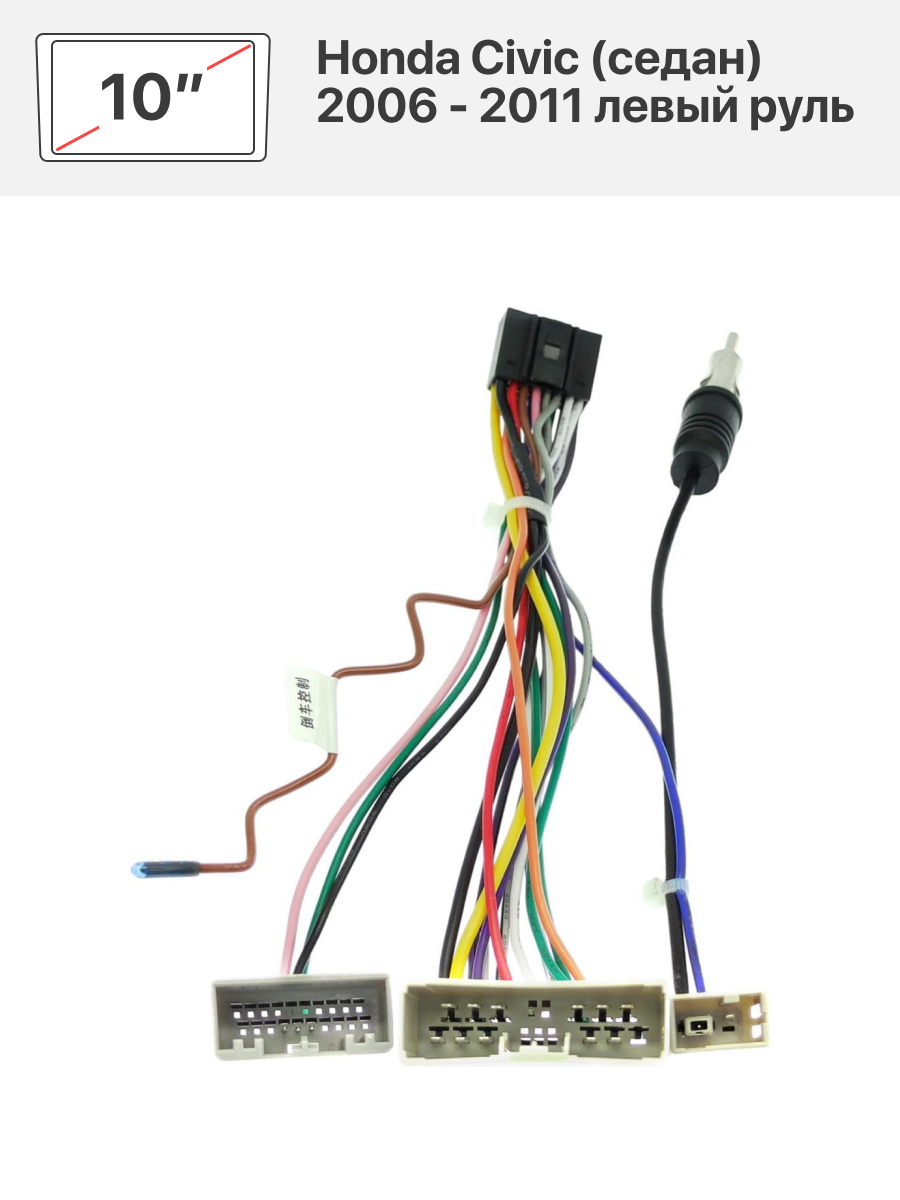 В комплекте идет переходная рамка 10 дюймов и переходник на штатную проводку для Honda Civic (седан) 2006 - 2011 левый руль в комплектации без штатной камеры и штатного усилителя