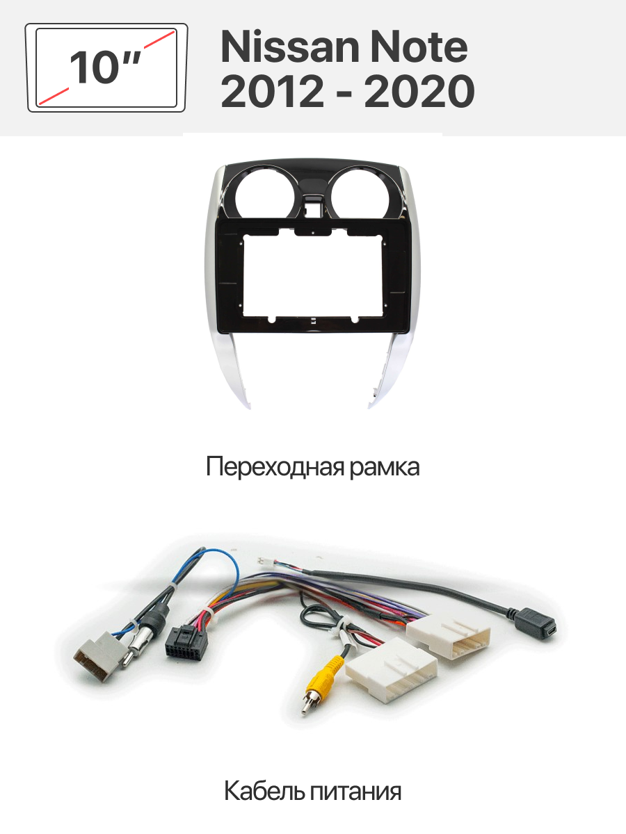 Переходная рамка 10" и комплект проводов для Nissan Note 2012 - 2020 в комплектации со штатной камерой
