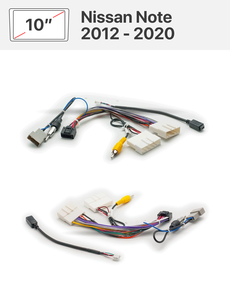 В комплекте идет переходная рамка 10 дюймов и переходник на штатную проводку для Nissan Note 2012 - 2020 в комплектации со штатной камерой заднего вида.