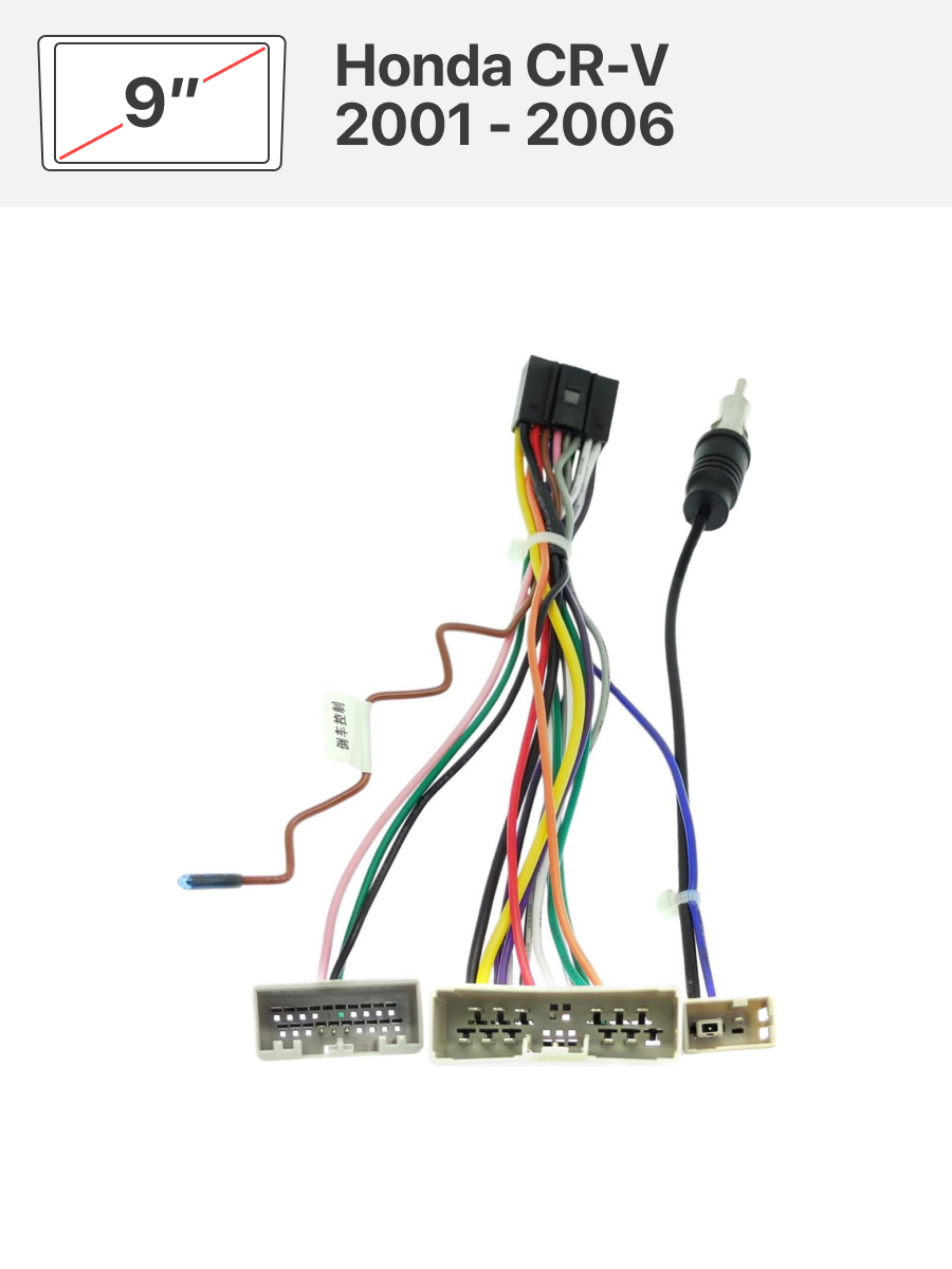 В комплекте идет переходная рамка 9 дюймов и переходник на штатную проводку для Honda CR-V 2001 - 2006