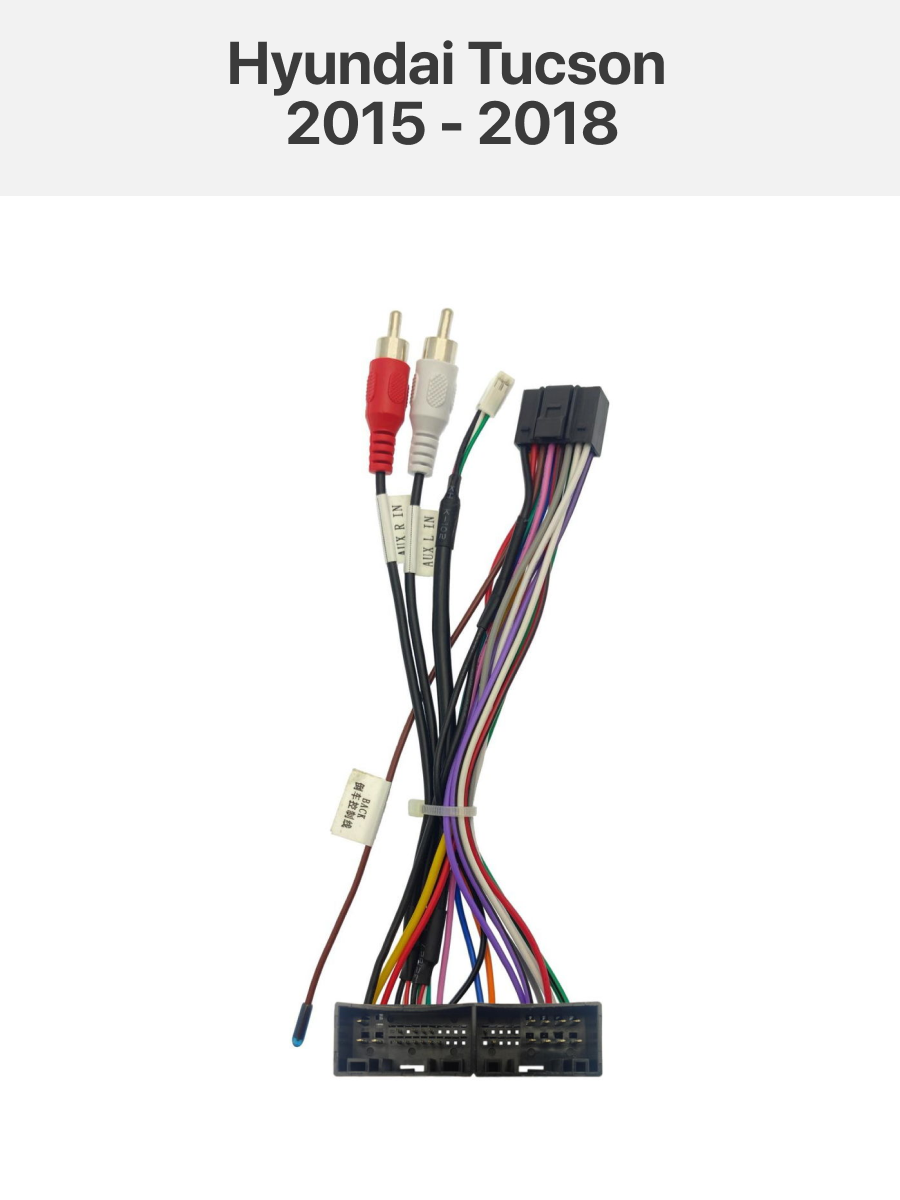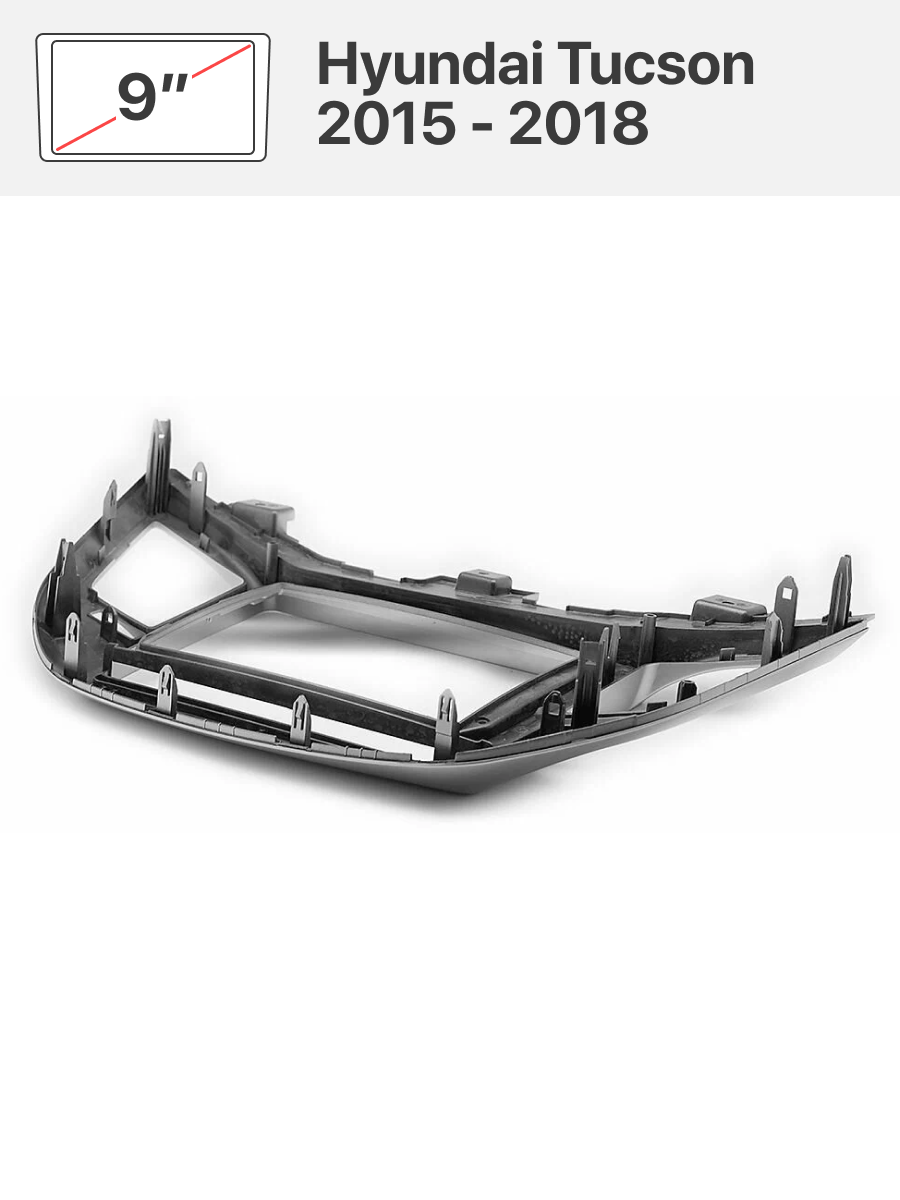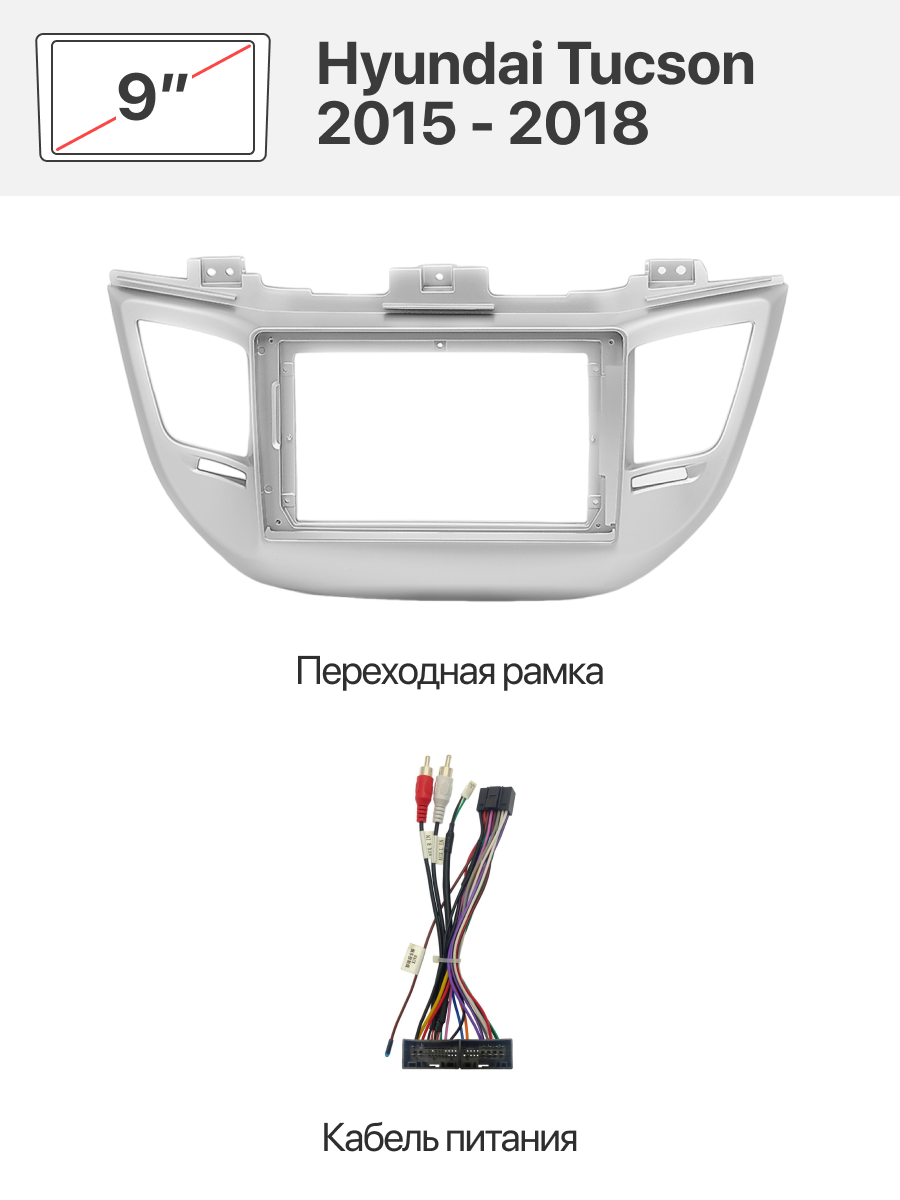 В комплекте идет переходная рамка 9 дюймов и переходник на штатную проводку для Hyundai Tucson 2015 - 2018 в комплектации без штатной камеры и штатного усилителя.