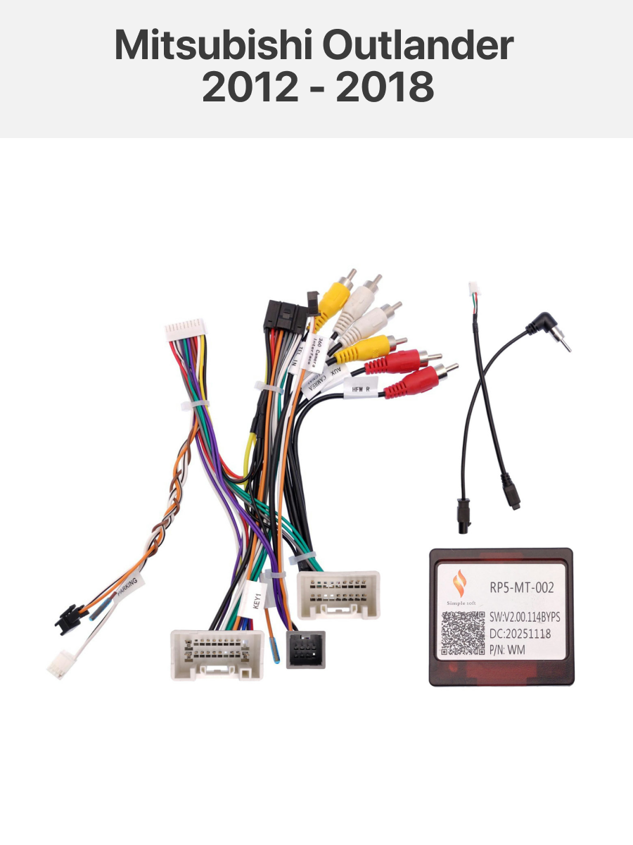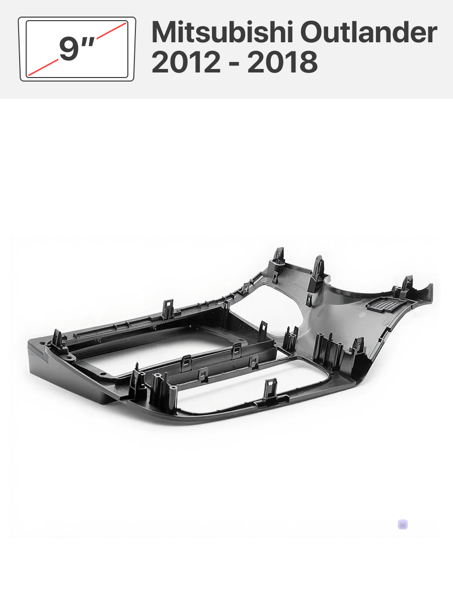 В комплекте идет переходная рамка 10 дюймов и переходник на штатную проводку для Mitsubishi Outlander 2012 - 2018 с поддержкой штатной камеры.