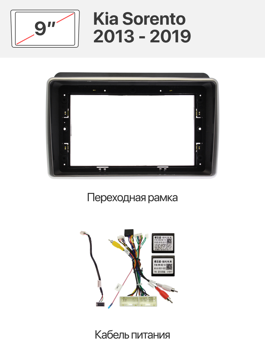 В комплекте идет переходная рамка 9'' и комплект проводов для Kia Sorento 2013 - 2019.