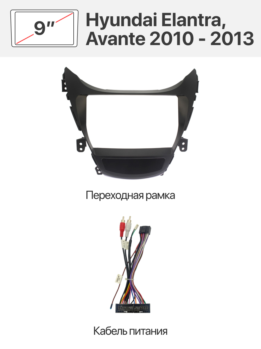 Переходная рамка 9'' и комплект проводов для Hyundai Elantra, Avante 2010 - 2013