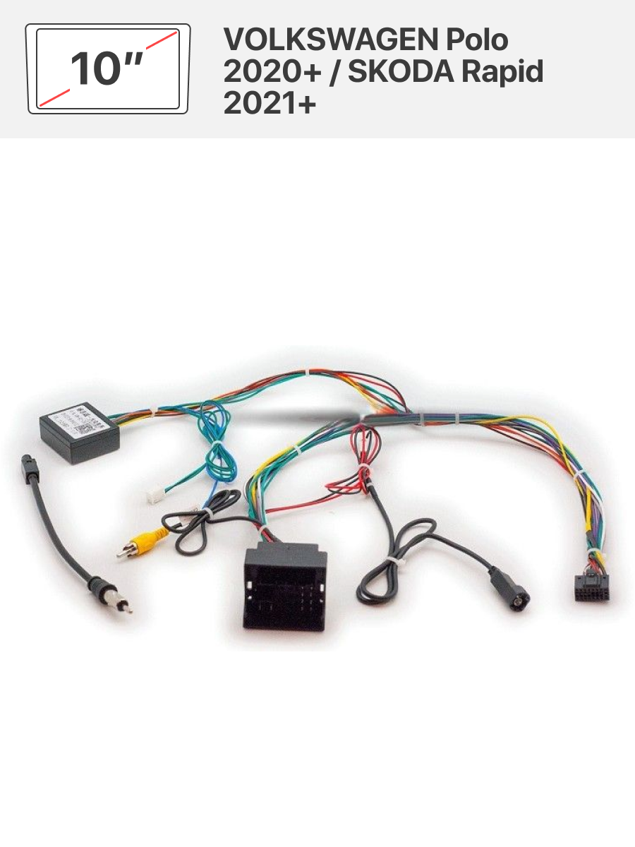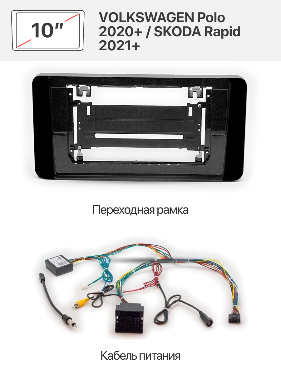 Переходная рамка 10" и комплект проводов для VOLKSWAGEN Polo 2020+ / SKODA Rapid 2021+