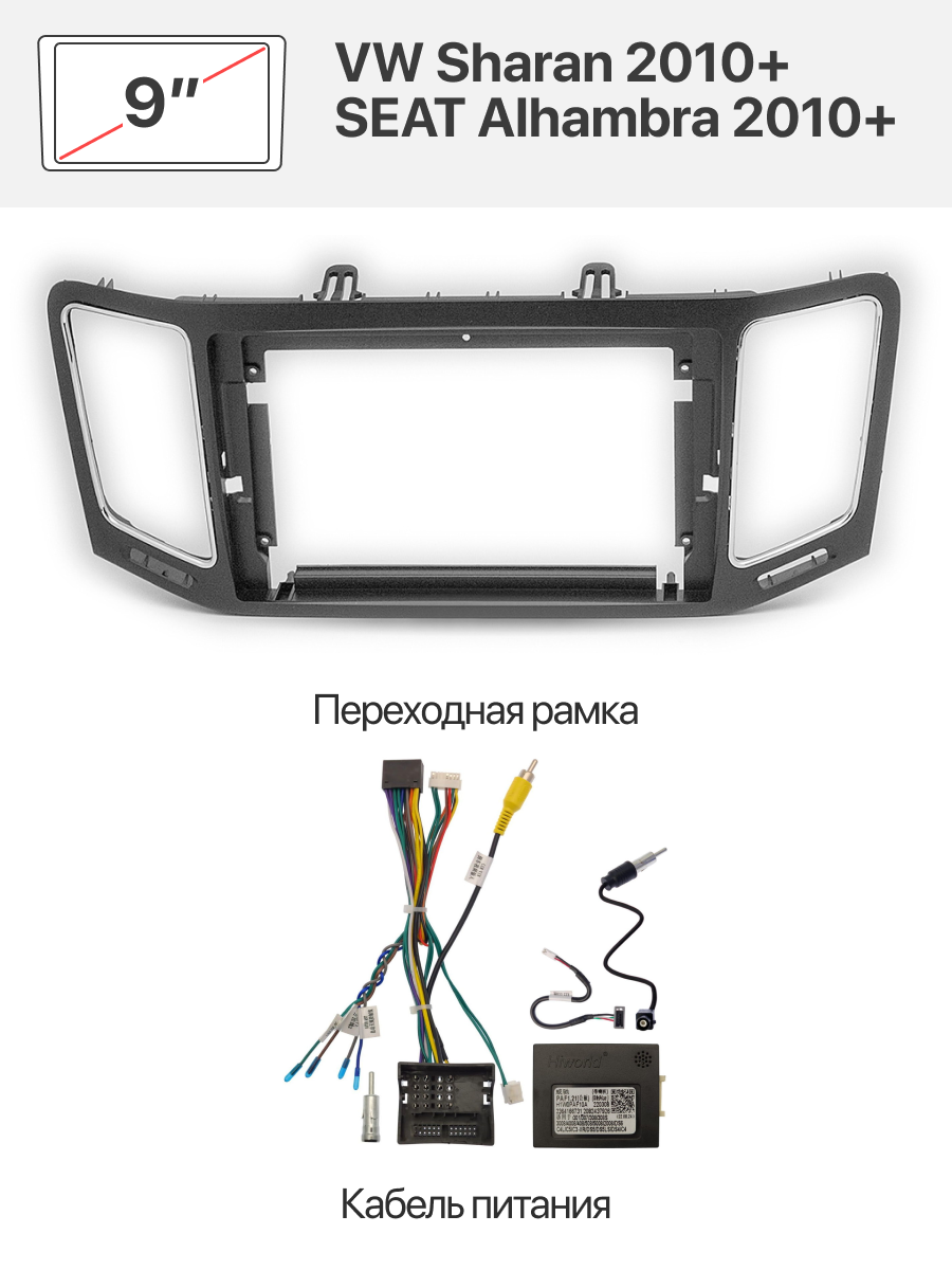 Переходная рамка 9" и комплект проводов для VW Sharan 2010+, SEAT Alhambra 2010+