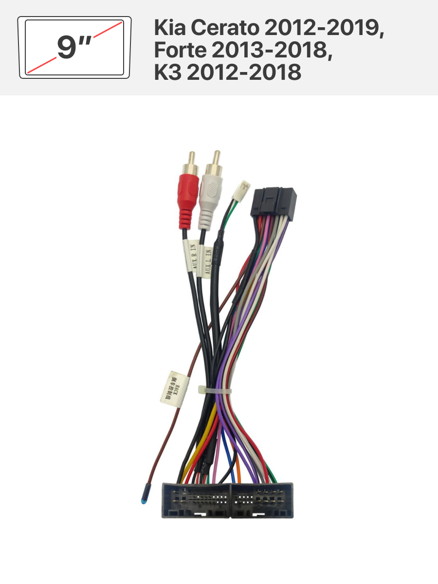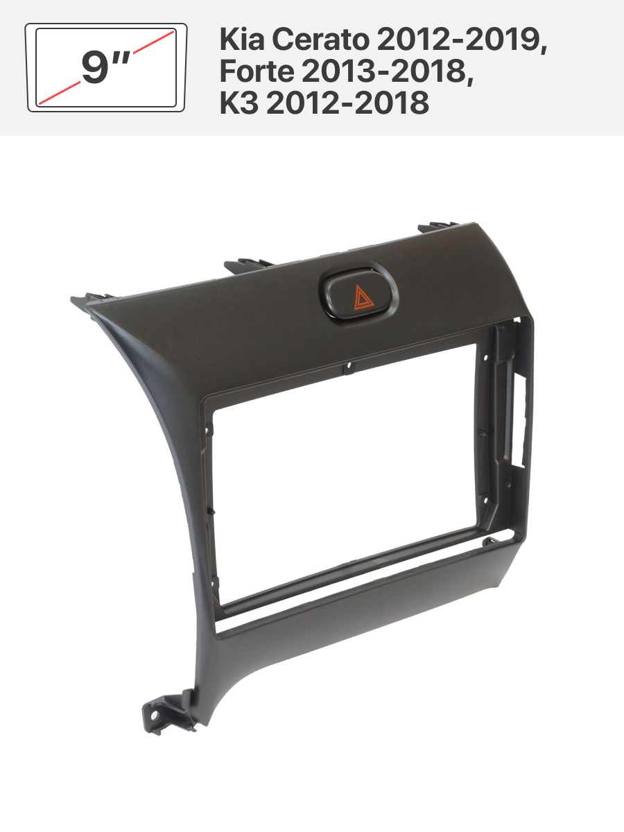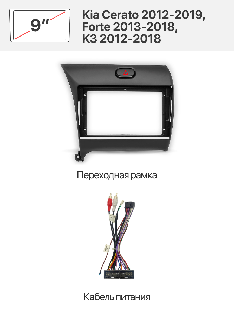 Переходная рамка 9" Android и комплект проводов для Kia Cerato 2012-2019, Forte 2013-2018,  K3 2012-2018 в комплектации без штатной камеры и штатного услителя звука