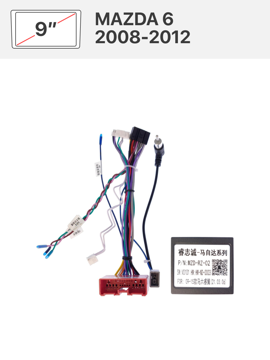 В комплекте идет переходная рамка 9" и переходник на штатную проводку c Canbus для MAZDA 6 2008-2012