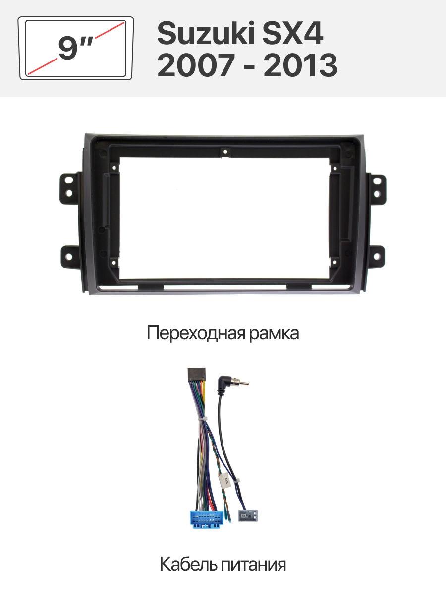 В комплекте идет переходная рамка, 9 дюймов и переходник на штатную проводку для Suzuki SX4  2007 - 2013.
