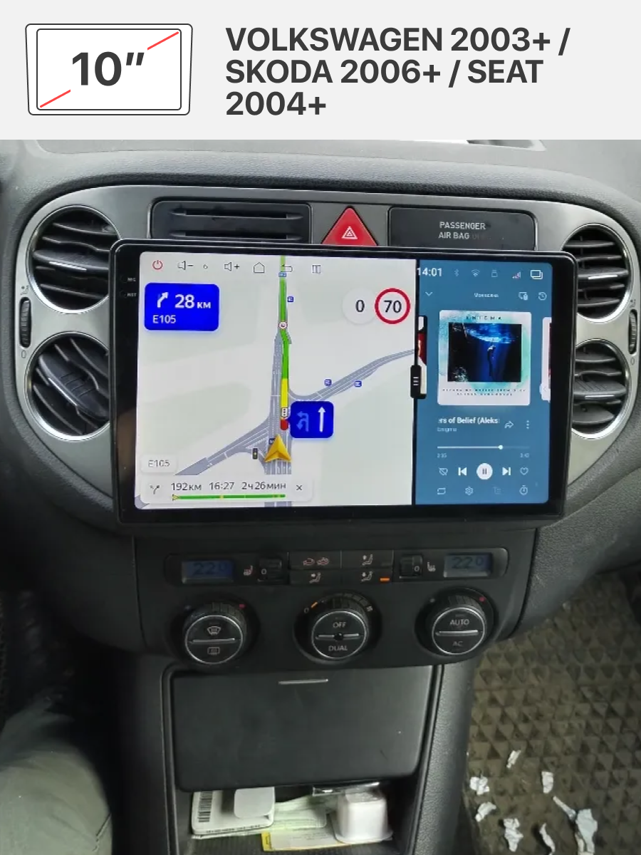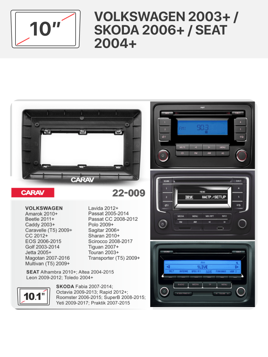 Переходная рамка 10" Android и комплект проводов (ISO) для VOLKSWAGEN 2003+ / SKODA 2006+ / SEAT 2004+