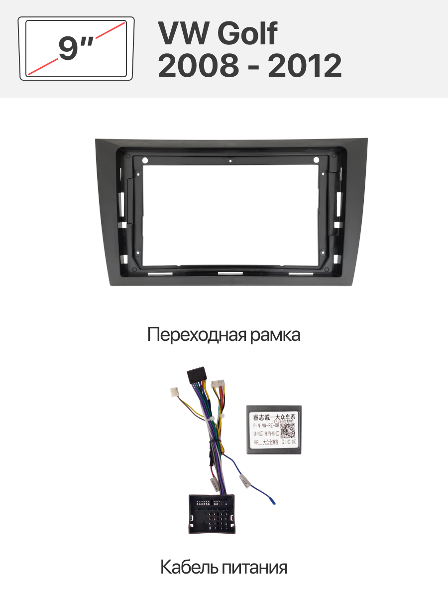 Переходная рамка 9" Android и комплект проводов для VOLKSWAGEN Golf 2008 - 2012 (основной 40 pin, антенна, CAN)